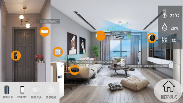 6、場景設置:回家時,在家門口用遙控器直接按"回家"場景。